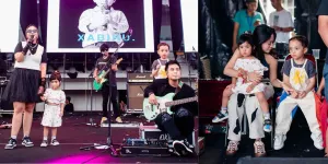 Meski Diguyur Hujan Gerimis Manja, Ndarboy Genk Bangkitkan Gairah Pengunjung Festival Pasar Musik dengan Senam Kesehatan Hati