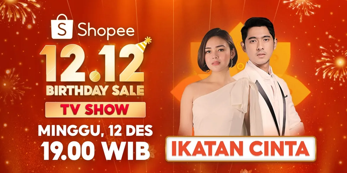Kapanlagi.com - Shopee Indonesia tengah menyiapkan kembali kejutan-kejutan yang meriah bersama para pemain Ikatan Cinta dalam perayaan puncak promo Shopee 12.12 Birthday Sale TV Show. Acara Shopee 12.12 Birthday TV Show bakal dilangsungkan pada Minggu, 12 Desember 2021 pukul 19.00 WIB. Para penggemar sinetron Ikatan Cinta bisa melihat penampilan Al & Andin secara langsung di berbagai stasiun televisi nasional, yaitu SCTV, RCTI, Indosiar, MNCTV, ANTV, RTV, serta Shopee LIVE dan channel YouTube Shopee Indonesia.