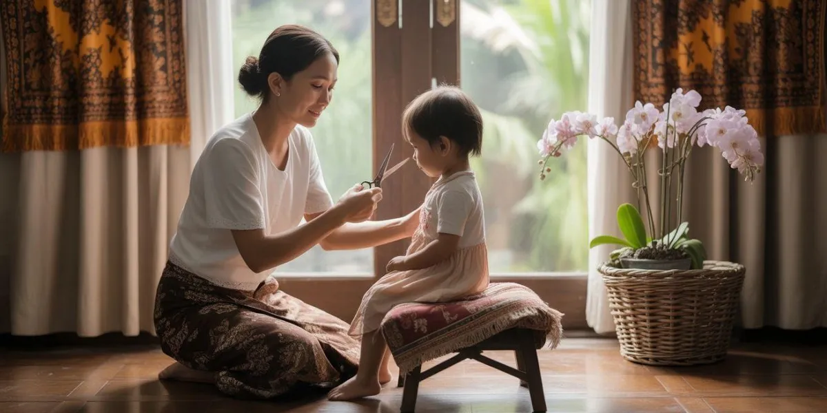 Menurut Ensiklopedi Budaya Islam Nusantara yang diterbitkan oleh Tim Kementerian Agama, tradisi memotong rambut anak memiliki makna spiritual yang mendalam dalam budaya Islam Indonesia. Prosesi ini sering dikaitkan dengan akikah dan pembersihan spiritual, dimana pemotongan rambut bayi pada hari ketujuh kelahiran menjadi bagian dari ritual keagamaan yang penting.