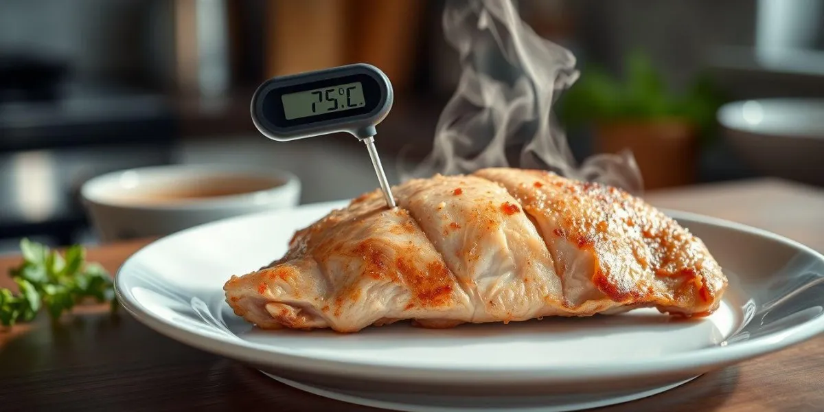 Cara paling akurat adalah menggunakan termometer daging untuk mengecek suhu internal dada ayam. Jika sudah mencapai 75°C, daging sudah matang sempurna. Cara lain adalah dengan menusuk bagian paling tebal daging dengan garpu atau pisau; jika cairan yang keluar berwarna bening (bukan merah muda), berarti daging sudah matang. Namun, metode termometer tetap yang paling direkomendasikan untuk hasil yang presisi.