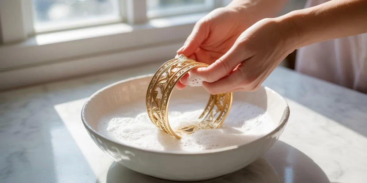 Metode ini sangat aman untuk dilakukan secara rutin dan tidak akan merusak lapisan emas. Sabun cuci piring efektif mengangkat lemak dan kotoran tanpa meninggalkan residu yang dapat membuat emas kusam kembali.