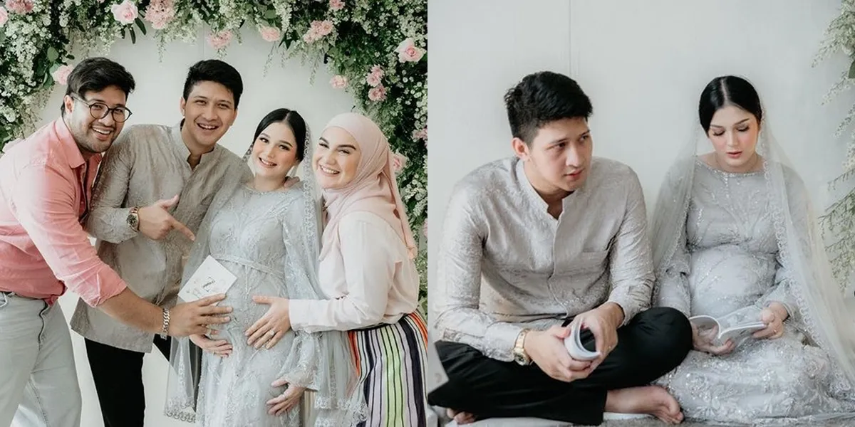 Ia memamerkan babybump yang sudah semakin membesar di acara tujuh bulanan.