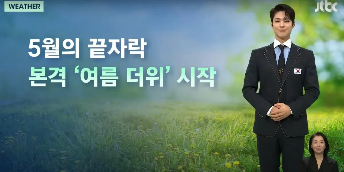 Tanpa pengumuman sebelumnya, Park Bo Gum tampil membacakan prakiraan cuaca dengan penampilan serius namun tetap memikat. Aksinya itu membuat publik bertanya-tanya, apakah ia benar-benar beralih profesi menjadi pembawa berita?