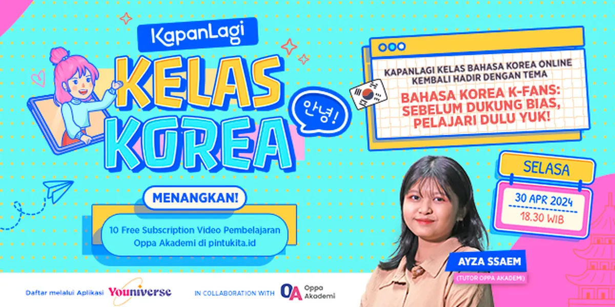 Kapanlagi.com - Di bulan April ini KapanLagi Belajar Bahasa Korea masih dengan Oppa Akademi akan belajar bareng seputar Bahasa Korea K-Fans: Sebelum Dukung Bias, Pelajari Dulu Yuk!