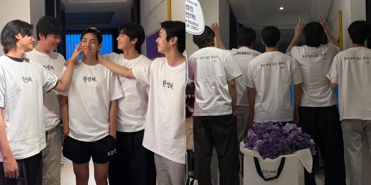 Momen sambutan ini bak mengingatkan kembali saat Wooga Squad mengantarkan V berangkat wamil pada 2023. Penasaran seperti apa potretnya? Selengkapnya cek di sini momen Wooga Squad sambut kepulangan V.
