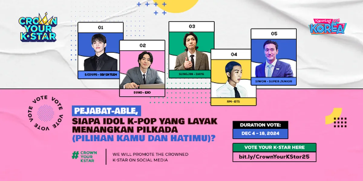 Kapanlagi.com - Ngomongin soal "PILKADA (Pilihan Kamu dan Hatimu)", KapanLagi Korea bakal ngajak kamu buat memilih siapa si idol yang punya vibe charming dan cocok jadi pemimpin di CROWN YOUR K-STAR edisi terbaru ini.