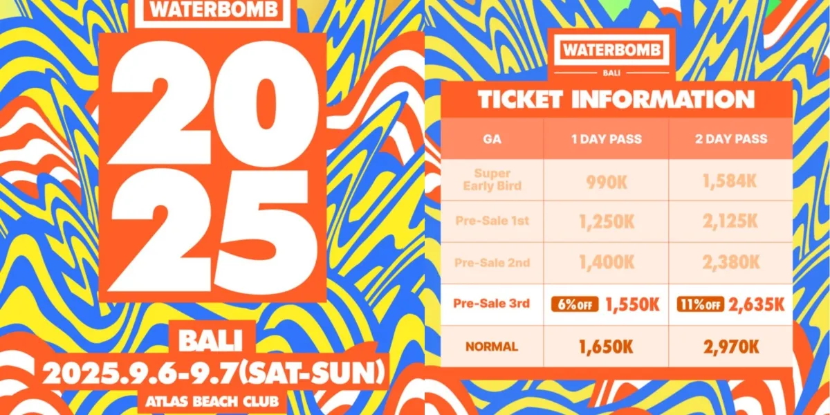 Penjualan tiket Waterbomb Bali 2025 resmi dibuka pada 18 April pukul 19.00 WIB. Saat ini tiket sudah memasuki tahap Presale 3, berikut harga tiket yang tersedia saat ini: