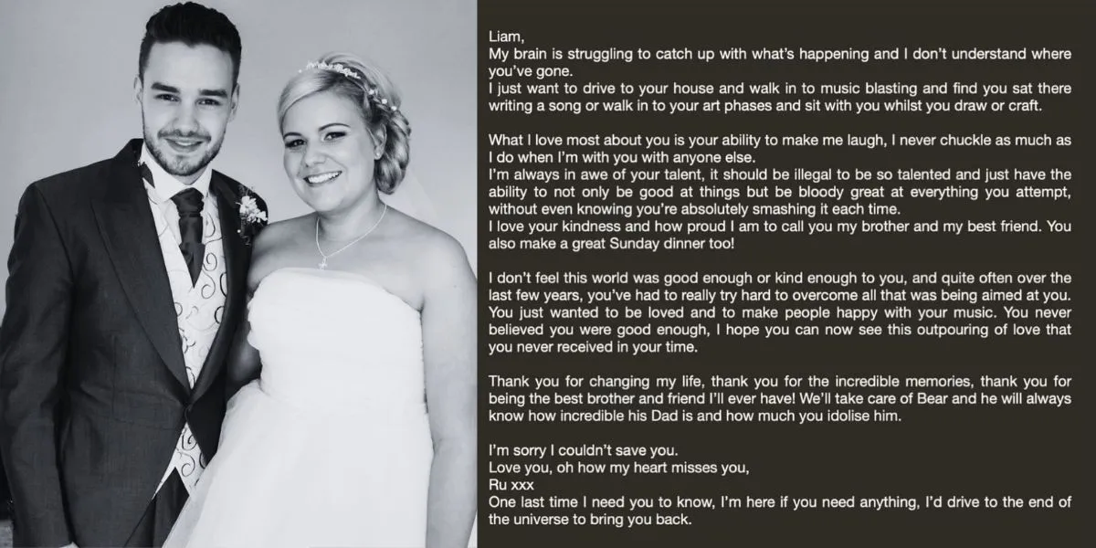 Ruth mengenang Liam sebagai sosok yang bukan hanya seorang kakak, tetapi juga sahabat yang selalu berjuang menghadapi tantangan hidup. Dalam tulisannya, ia mencurahkan perasaan yang mendalam, mengungkapkan bahwa meskipun Liam adalah bintang besar, dia sering meragukan dirinya sendiri. "Saya tidak merasa dunia ini cukup baik atau cukup baik kepadamu," tulis Ruth, mencerminkan kesedihan yang mendalam.
