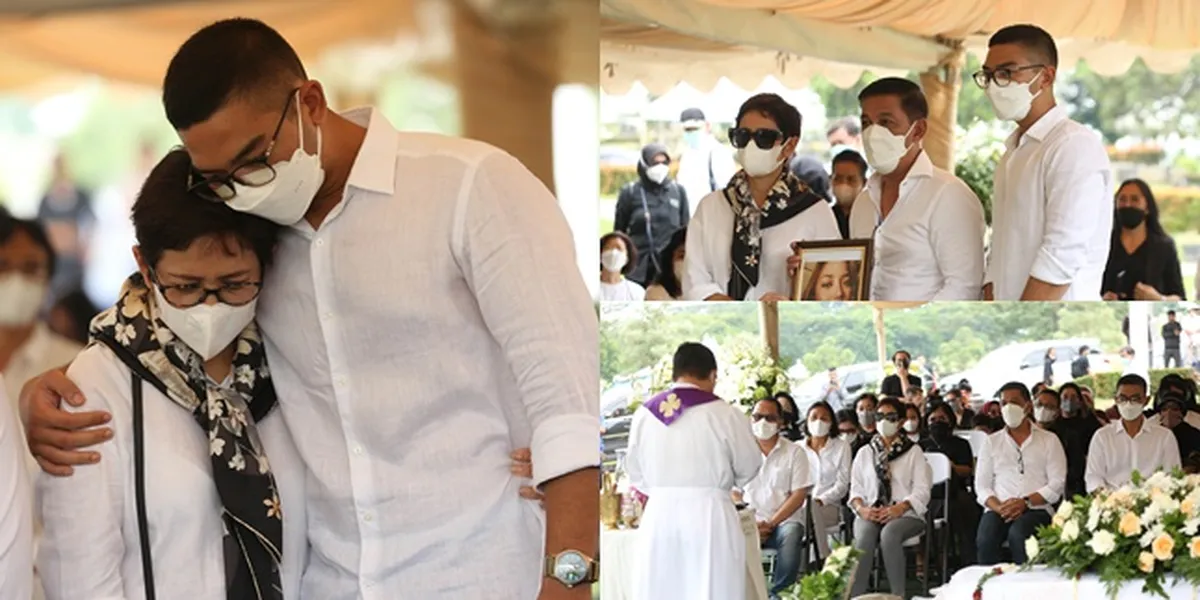 Tiba di San Diego Hills, Nurul Arifin berjalan sambil membawa foto sang putri tercinta. Ia dan sang suami terlihat mengenakan kemeja putih saat mengantar Maura ke peristirahatan terakhir.