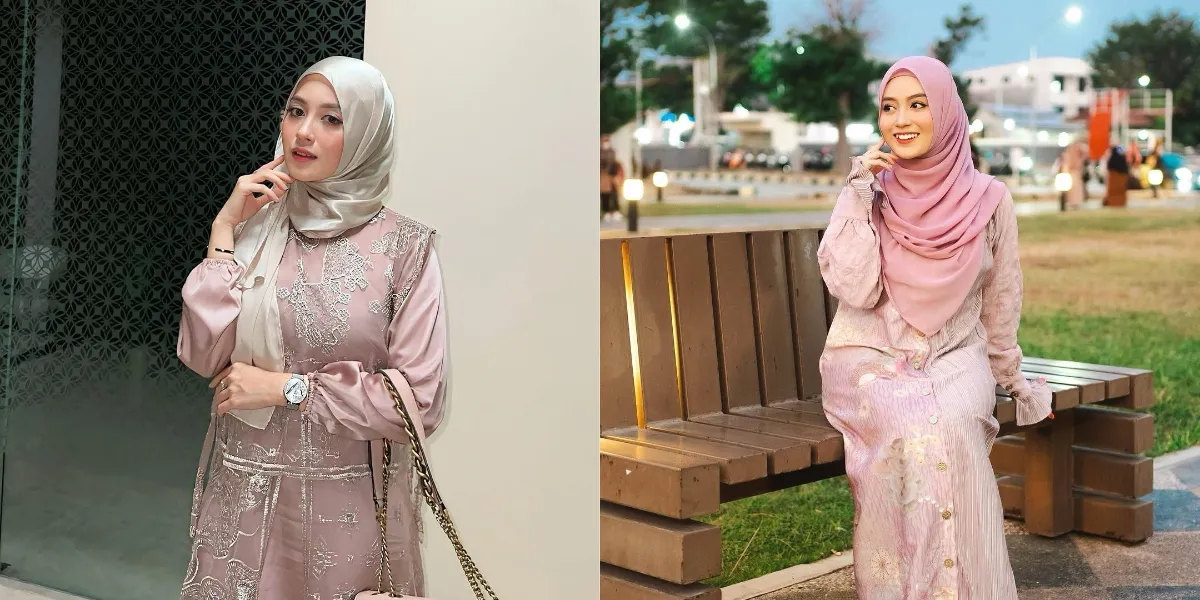 Nabilah Ayu tampil memukau dalam paduan pashmina satin dan gamis brokat berwarna pink pada acara formal. Gamis brokat yang dipilih memiliki detail yang mewah dan menambah kesan mewah serta anggun. Pashmina satin yang dikenakan memberikan kilau lembut yang semakin memperindah penampilan, menjadikannya sempurna untuk acara pesta atau kondangan.