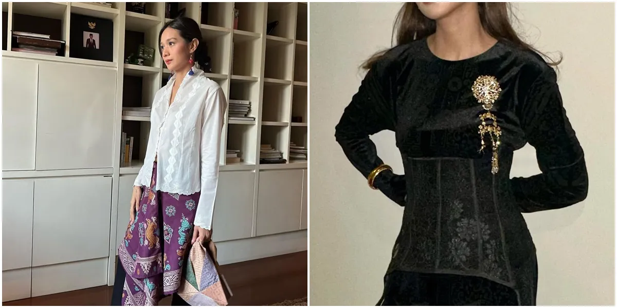Pemilihan kebaya dengan warna netral sering kali menjadi pilihannya, yang tidak hanya memancarkan kecantikan tetapi juga memperlihatkan tubuh idealnya.