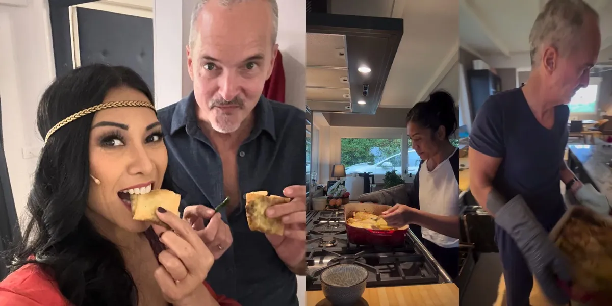 Saat memasak, Anggun tidak sendiri. Ia ditemani oleh sang suami tercinta, Christian Kretschmar. Lihatlah dalam potret ini, momen suami Anggun C Sasmi ikut membantu sang istri memasak. Ia terlihat mengangkat makanan yang baru matang dari oven untuk dipindahkan di atas meja makan.