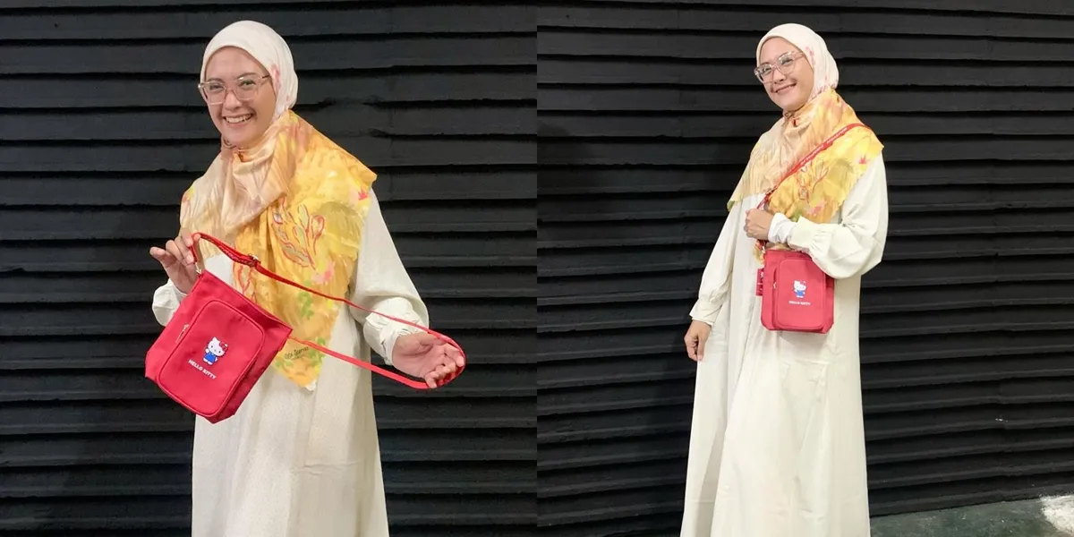 Tas selempang merah dengan gambar Hello Kitty memberikan sentuhan playful pada tampilannya. Aksesori ini menambah kesan fresh dan youthful tanpa menghilangkan kesan anggun yang ia tampilkan.