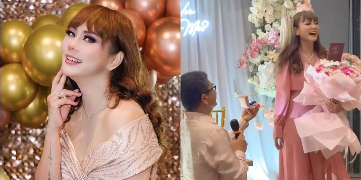 Lamaran ini tentu menjadi kabar menggembirakan. Di hari bahagianya ini, seorang pria berlutut di hadapan Anita Hara dengan membawa cincin. Perempuan yang berprofesi sebagai presenter dan pemain sinetron ini tersenyum tersipu dengan lamaran tersebut.