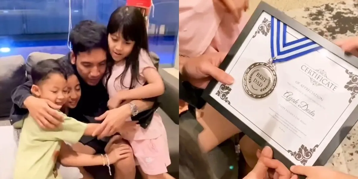 Puncak dari kejutan tersebut adalah pemberian Sertifikat "Best Dad" yang dirancang oleh anak-anaknya. Sertifikat ini diberikan dengan penuh cinta membuat Desta terlihat makin bahagia nih, KLovers!