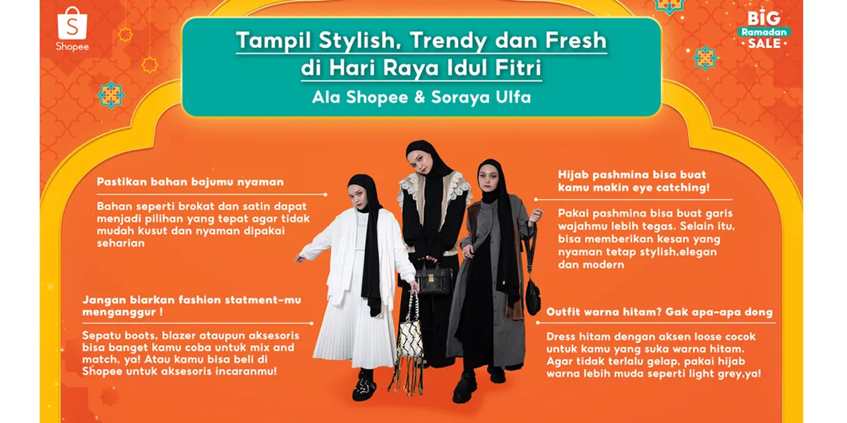 Kalau biasanya outfit Lebaran harus berwarna putih atau identik dengan gamis, tahun ini kamu bisa menampilkan looks yang beda, tapi tetap sopan. Menggandeng influencer ternama, Soraya Ulfa, Shopee membagikan inspirasi mix and match yang bisa memaksimalkan penampilan Lebaran nanti dalam rangka memeriahkan kampanye Shopee Big Ramadan Sale 2022. Seperti apa inspirasinya?