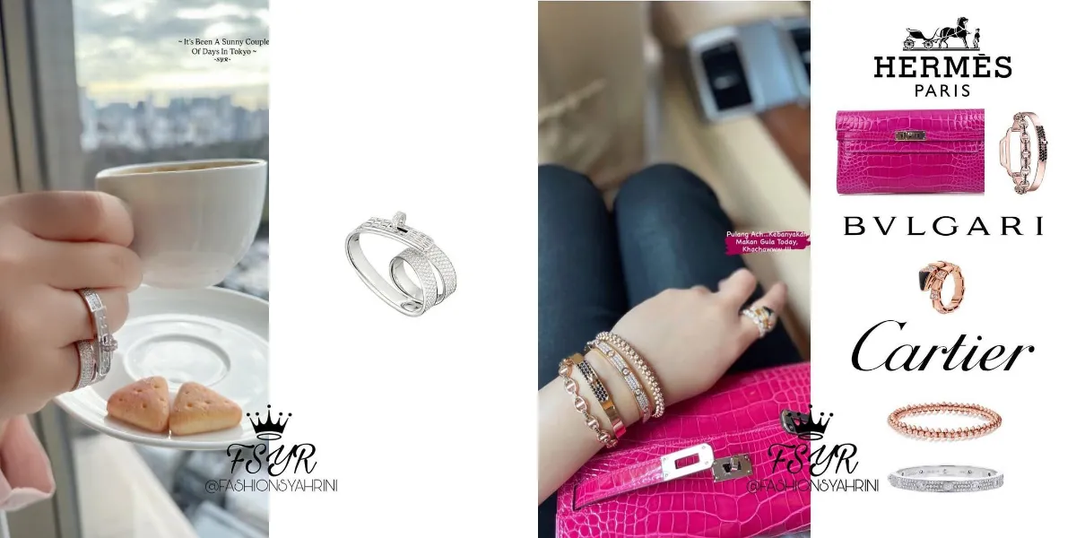 Tak hanya satu, Syahrini disebut memiliki berbagai koleksi perhiasan dengan harga selangit. Dari cincin berlian hingga gelang eksklusif, total nilai aksesorisnya bisa menyamai harga beberapa unit mobil. Simak daftar lengkapnya berikut ini.