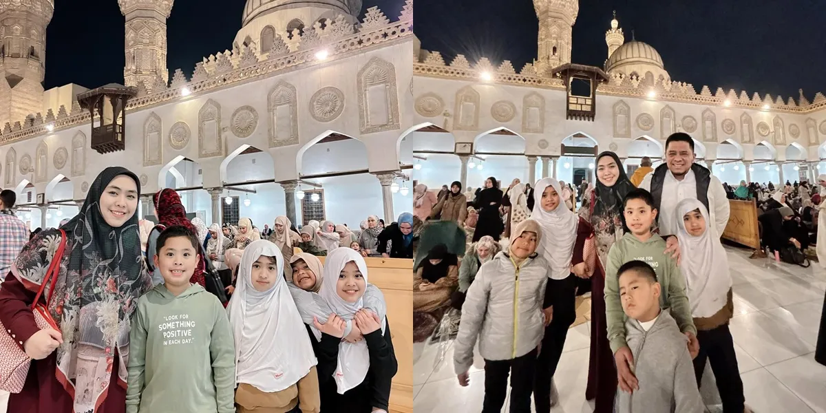 Dalam salah satu foto yang ia bagikan, Oki Setiana Dewi tampak berpose dengan anak-anaknya di halaman Masjid Azhar. Keluarga selebriti ini terlihat mengenakan pakaian muslim dengan latar belakang menara masjid yang megah. Suasana hangat dan ceria terpancar dari wajah anak-anaknya yang tampak bahagia.