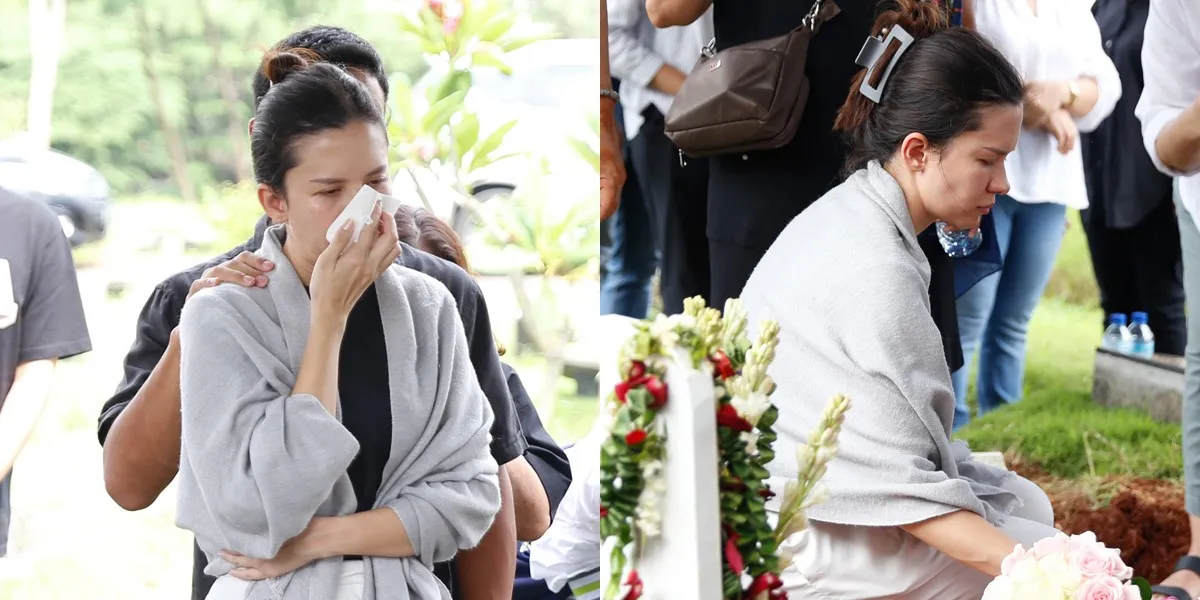 Saat jenazah menyatu dengan tanah, Michelle Joan semakin tak kuasa menahan tangis hingga air mata membanjiri pipinya.