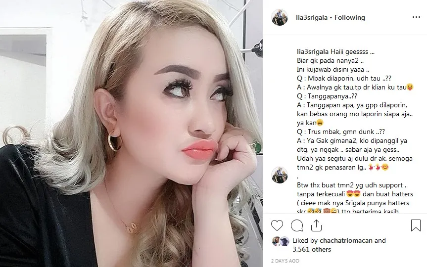 Saat itu Lia mengaku jika ia justru tahu permasalahan tersebut dari netizen. Ia pun juga menuturkan akan memenuhi panggilan jika memang diharuskan datang menemui pihak yang berwajib.