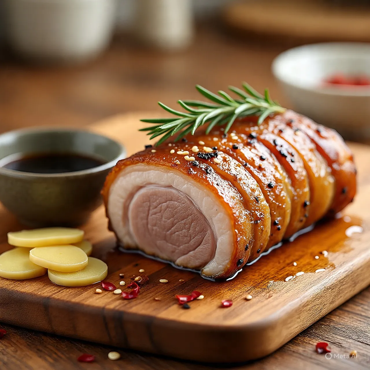 Kunci kulit babi yang renyah adalah mengeringkan permukaan kulit dengan sempurna sebelum dipanggang. Tusuk-tusuk kulit dengan garpu, olesi dengan campuran garam, baking powder, dan cuka, lalu diamkan di kulkas tanpa ditutup selama beberapa jam agar permukaan benar-benar kering. Panggang dengan suhu tinggi di akhir proses memasak untuk menghasilkan tekstur yang sangat crispy.