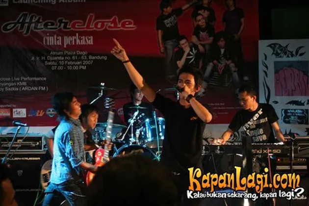 Sebuah grup band asal kota Kembang, Bandung, yang bernama Afterclose, meluncurkan album perdana, Cinta Perkasa, di Dago Plasa, Bandung, Sabtu (10/2). Grup yang beranggotakan Budi (vocal), Ma'il (guitar), Indra (guitar), Syahdan (bass), Abi (keyboard) dan Roy (drum) ini mengusung warna musik pop alternative. Usai konferensi pers, mereka tampil live dengan membawakan berepa buah lagu di hadapan para pengunjung saat itu.