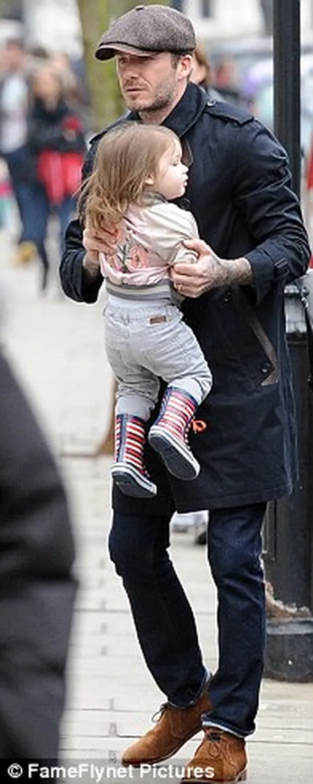 Meski masih kecil, Harper Seven sudah di dandani oleh ibunya. Kali ini ia jalan-jalan bersama sang ayah, David Beckham dengan memakai sepatu boots bertali setinggi lutut. Lucu ya :)