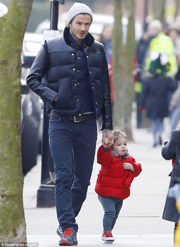 Baru pulang dari China, David Beckham melepas rindu kepada sang buah hati. Ia mengajak Harper Seven jalan-jalan, dan mereka memakai jaket matching.