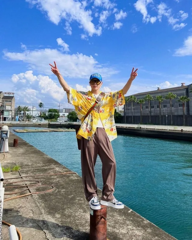 Outfit pantai ala Lee Taeyong. Dengan menggunakan celana kain, kaus yang dipadukan dengan kemeja bisa menambah gaya fashion kamu semakin menarik!
