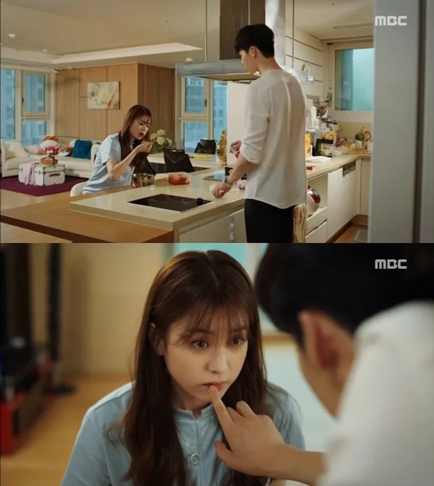 Di episode 10 MBC W, Lee Jong Suk dengan perhatian mengobati luka di bibir Han Hyo Joo saat dokter ini sedang makan ramyun yang dibuatnya.