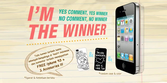 Bagi Anda yang memang suka review barang atau komentar, www.yes24.co.id juga mengadakan event YES24 I'M THE WINNER! Kamu cukup tulis komentar ataupun review dari barang-barang yang ada di Yes24 dan bagi komentar terbaik, akan mendapatkan IPHONE 4S GRATIS! Event ini berlangsung dari tanggal 12 October - 2 November 2012. Semakin banyak kamu tuis komentar, semakin besar pula kesempatan kamu untuk menang!