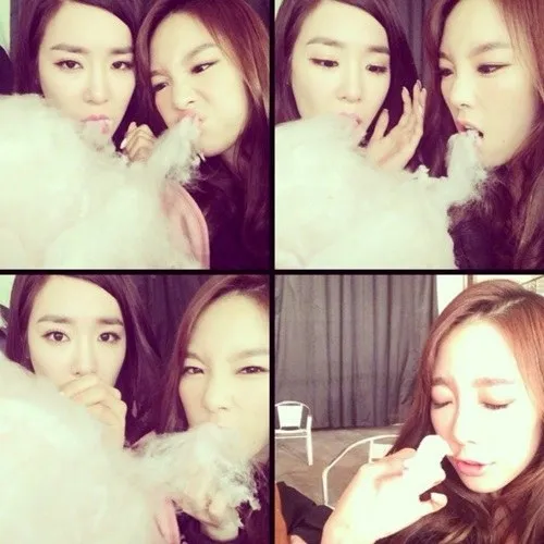 Kapanlagi.com - Dua vokalis utama idol grup Girls Generation yakni Taeyeon dan Tiffany tampak menikmati waktu kebersamaan mereka dengan menyantap permen kapas.