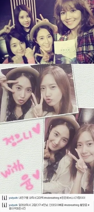 Tampak melalui foto yang dirilis, Yuri berfoto bersama Tiffany, Sooyoung, dan Seohyun dengan gaya 'peace'. Sementara dalam foto lainnya dia berfoto bersama YoonA yang begitu memperlihatkan wajah cantik mereka meski tampil tanpa make up.Netizens yang melihat foto itu berkomentar, "Girls Generation bahkan tampak keren tanpa make up," dan "Sangat senang bisa melihat mereka tampak sehat," sementara lainnya berkomentar, "Aku senang melihat mereka saling memberikan semangat satu sama lain."