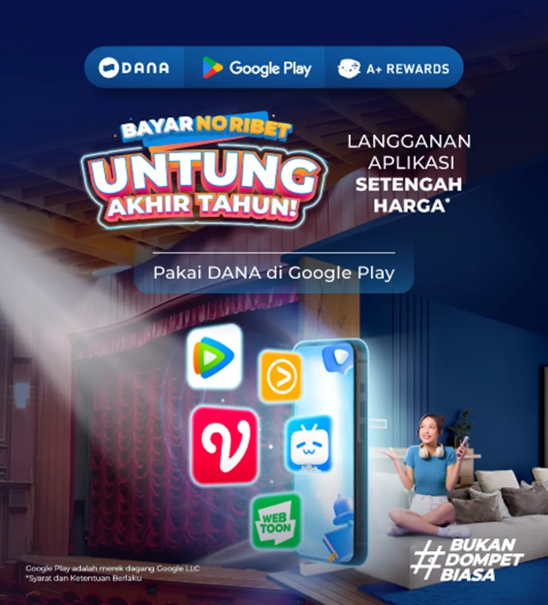 Tunggu apa lagi? Buruan download dan install aplikasi DANA biar bisa maraton nonton serial favorit di akhir tahun cuma dengan SETENGAH HARGA!