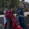Keseruan Ariel Tatum Dibonceng Daffa Wardhana Naik Vespa