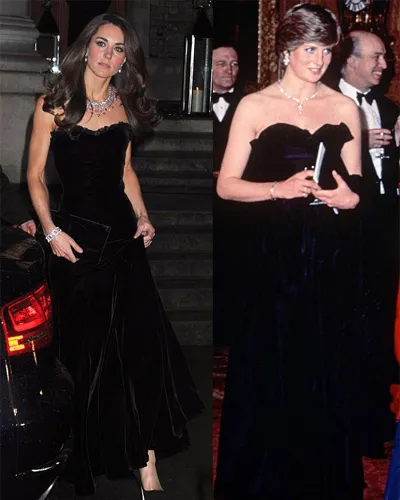Kapanlagi.com - Sejak menikah dengan Pangeran William, Kate Middleton hampir tak pernah absen dibandingkan dengan Putri Diana. Kali ini, para kritikus punya satu alasan kuat, karena Kate mengenakan gaun yang hampir sama persis dengan yang dikenakan mendiang ibu mertuanya.Kate sempat menjadi pusat perhatian saat hadir dalam acara Military Awards yang diselenggarakan The Sun bersama suami dan adik iparnya, Pangeran Harry, pada Senin (19/12) lalu. Yang menarik, saat itu Kate mengenakan gaun yang benar-benar 'bukan gayanya', walau berhasil memukau banyak hadirin.Tak lama, gaun panjang beludru hitam ini segera dibandingkan dengan gaun yang dikenakan Putri Diana 30 tahun yang lalu. Saat itu, Diana mengenakan gaun rancangan Elizabeth dan David Emmanuel, yang juga merancang gaun pengantinnya. Sementara, gaun hitam milik Kate didesain oleh Sarah Burton, yang kebetulan juga merancang gaun pengantin cantik yang dikenakannya April lalu.