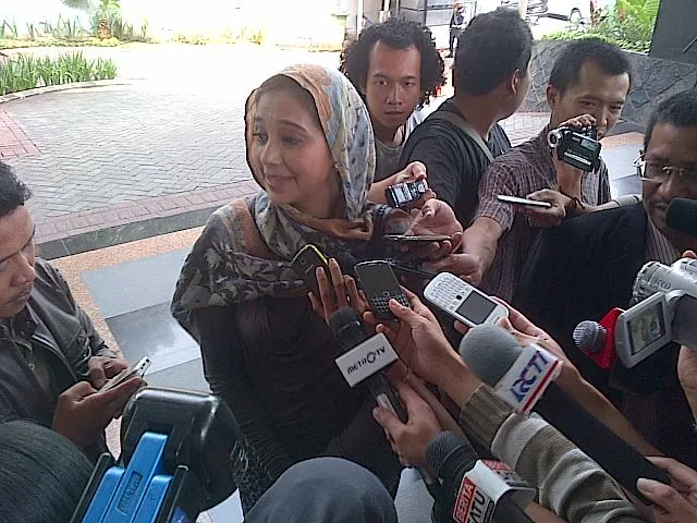 "Saya korban janji pekerjaan," ujar Ayu Azhari usai diperiksa di Kantor KPK, Rabu (1/5)