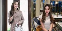 Aksesori seperti tas hitam berantai memberikan aksen mewah pada outfit kasualnya. Kacamata hitam yang ia kenakan semakin menambah kesan modis.