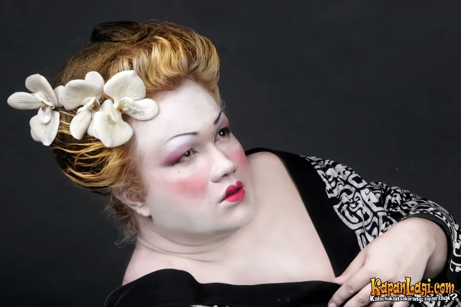 Terinspirasi dari dandanan Geisha, Ozy Syahputra mengubah Tata Liem menjadi seperti para pekerja seni itu, dengan riasan wajah dan tatanan rambut sedemikian rupa.