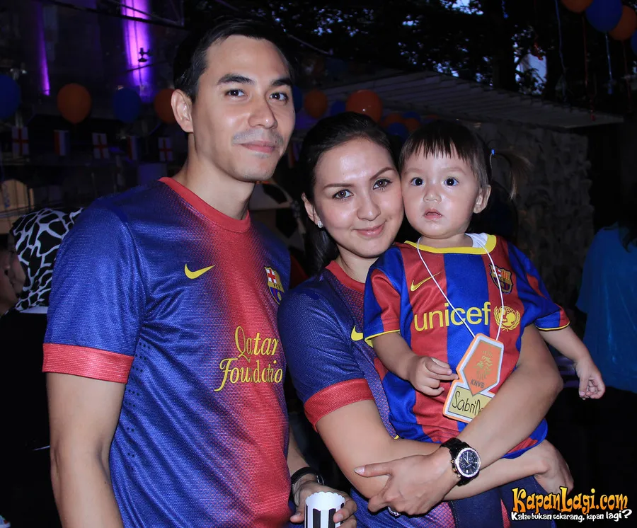 Kalau dilihat dari foto ini, rupanya keluarga Darius adalah fans berat Barcelona. Menghadiri pesta ulang tahun putra bungsu Wulan Guritno di Rolling Stone Cafe, Minggu (18/11), yang memang bertemakan sepak bola, keluarga ini kompak datang dengan mengenakan kostum bola klub asal Spanyol tersebut.