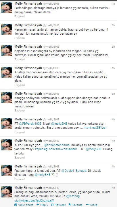 Kejadian ini bisa dibilang sangat ironis, selain Melly sudah pernah mengalaminya tahun lalu, ia sendiri juga merupakan warga asli Bandung. Melalui Twitter, Melly mengungkapkan keluh kesahnya, termasuk kekhawatirannya terhadap dampak psikis anaknya yang baru berusia empat tahun.