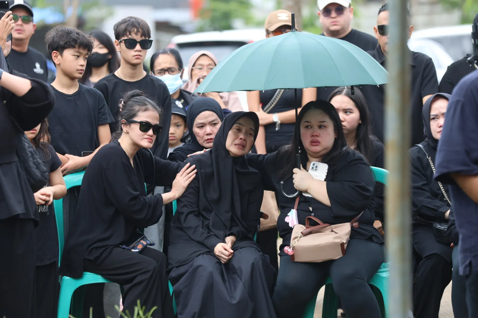 Kesedihan Reza semakin tak terbendung. Ia terus meluapkan emosinya, merasa seolah-olah peringatan atau perkataannya selama ini diabaikan. Teman-teman dekat yang berada di lokasi segera sigap mengerubungi dan berusaha menenangkan serta menutupi Reza dari sorotan kamera.